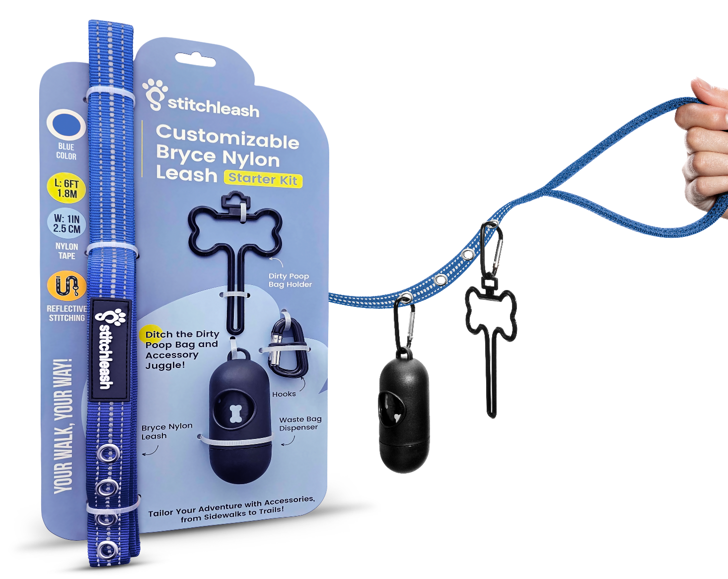 StitchLeash conveniently places all your walking essentials at your fingertips with the Bryce Nylon Leash.